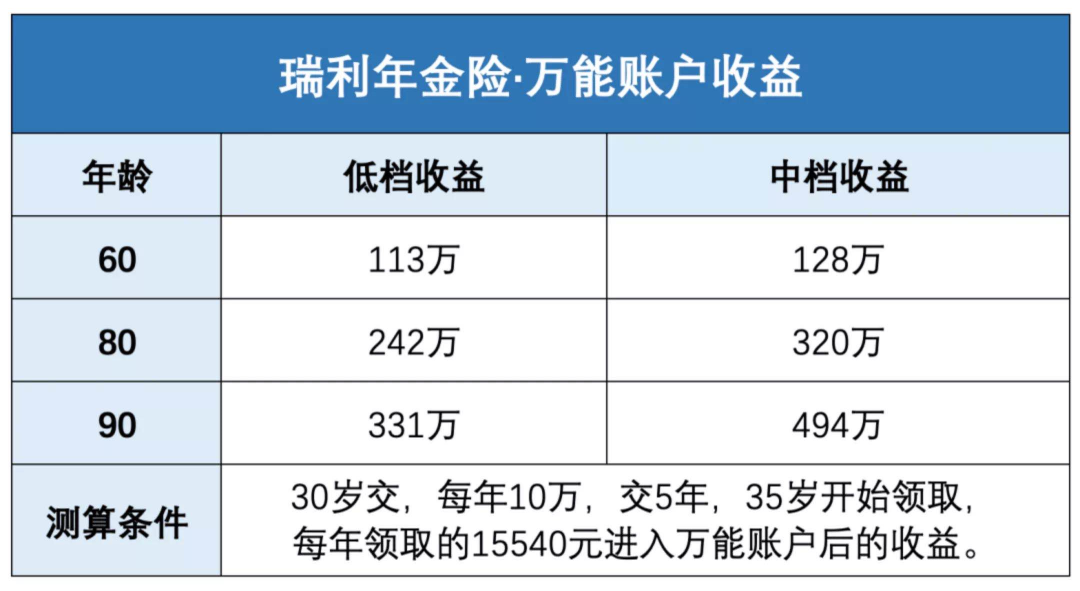 瑞利年金保險(xiǎn),由年金賬戶+萬能賬戶組成。