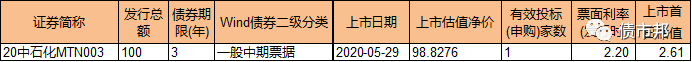 包銷的債券,99%的情況都是票面利率低于市場估值的,也就說包銷券上市時的凈價是低于100元面值的,以20中石化MTN003為例,其上市首日凈價為98.83元,與100元面值中間差的1.17元,便是包銷券的首日浮虧。