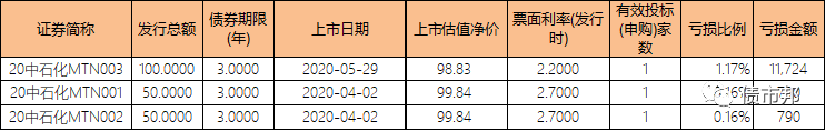 從估值上看,20中石化MTN001和20中石化MTN002在上市之后浮虧0.16%。20中石化MTN003浮虧較多,達到了1.17%,按照100億元的承銷金額,包銷銀行在上市首日就要計提1.17億元的虧損,1.17億元的虧損,要做多少筆承銷業務才能彌補過來啊?