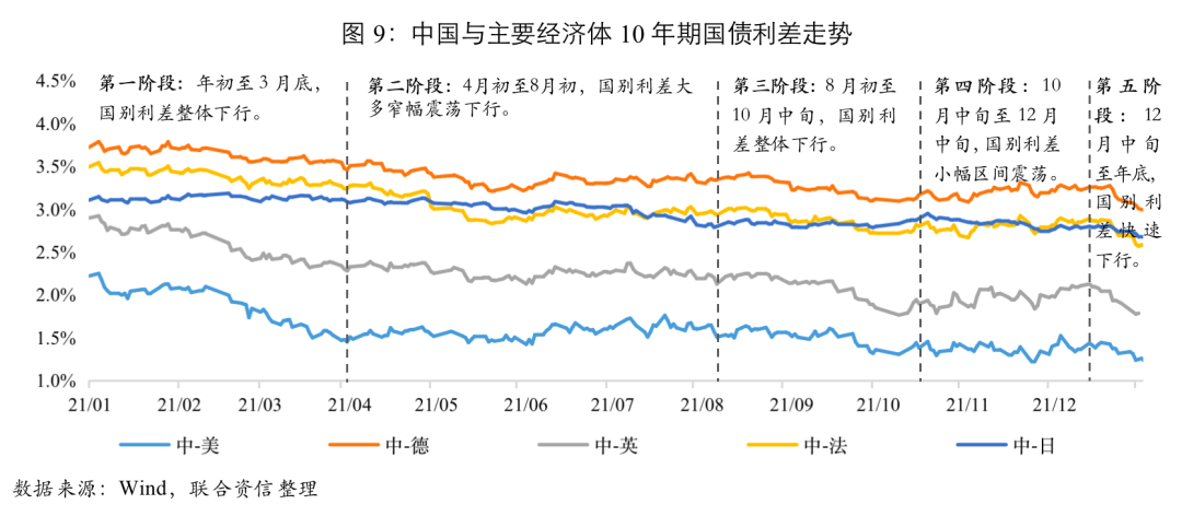 五、國別利差:2021年國別利差“前高后低”,2022年或小幅震蕩下行