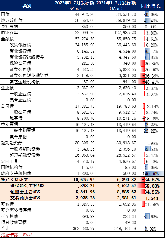2022年1-7月份,我國(guó)資產(chǎn)證券化產(chǎn)品發(fā)行規(guī)模為10676億元,同步增長(zhǎng)-34.87%。其中銀保監(jiān)會(huì)主管ABS發(fā)行規(guī)模為1898億元,同比增長(zhǎng)-58.03%;證監(jiān)會(huì)主管ABS發(fā)行規(guī)模為5842億元,同比增長(zhǎng)-34.26%;交易商協(xié)會(huì)ABN發(fā)行規(guī)模為2936億元,同比增長(zhǎng)-1.54%。
