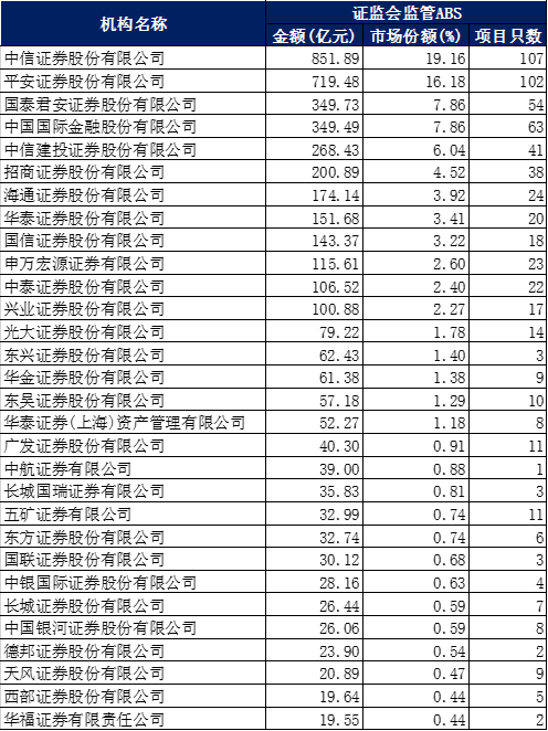 三、證監(jiān)會(huì)主管ABS承銷(xiāo)排名