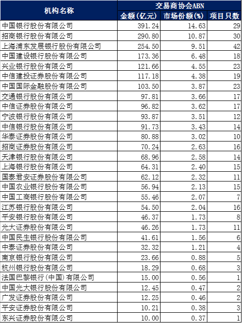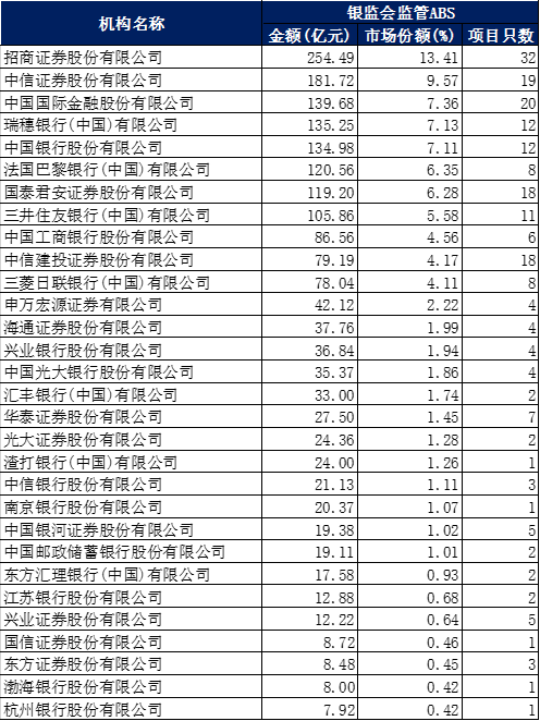 二、銀保監(jiān)主管ABS承銷(xiāo)排名