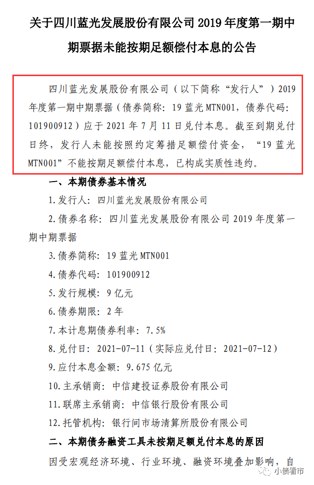 此前7月8日,藍(lán)光發(fā)展已公告稱由于公司流動(dòng)資金不足,“19藍(lán)光MTN001”本息兌付存在不確定性。