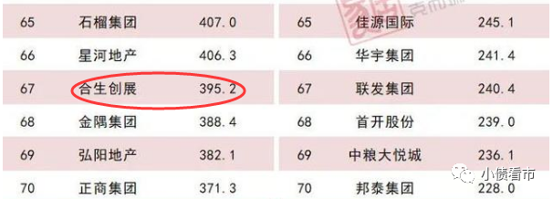 據克而瑞數據,去年合生創展以395.2億操盤金額位居房企第67位,體量上看屬于中小型房企。