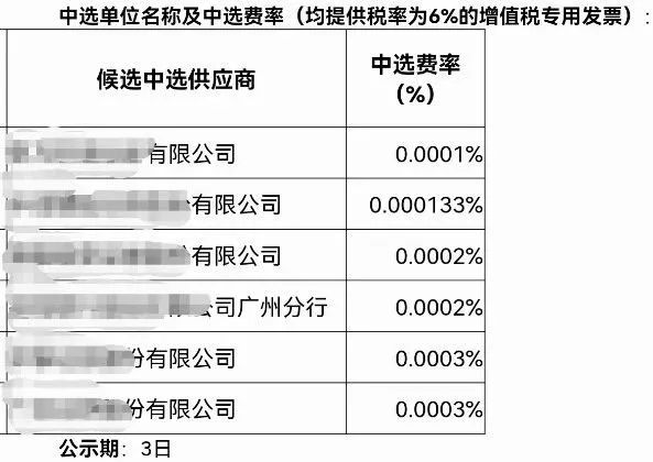 根據(jù)某銀行2021年8月9日的公告信息,選聘600億元金融債券發(fā)行服務,共有6家承銷商中標,中選費率最低為0.0001%(百萬分之一),最高為0.0003%(百萬分之三)。 也就是說,如果按照最低中選費率計算算,600億元金融債券的承銷費只有6萬元!這和2021年2月某頭部券商1萬元中標某銀行無固定期限資本債券的承銷費率真的是有異曲同工的感覺。