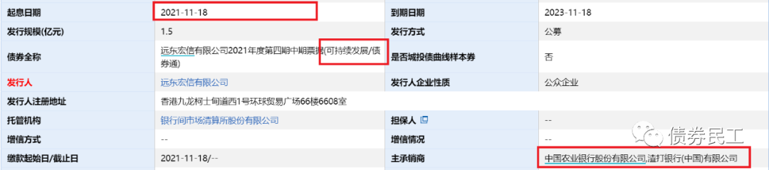 遠(yuǎn)東宏信有限公司2021年度第四期中期票據(jù)(可持續(xù)發(fā)展/債券通)于2021年11月18日正式起息,是國內(nèi)首單可持續(xù)發(fā)展債券!