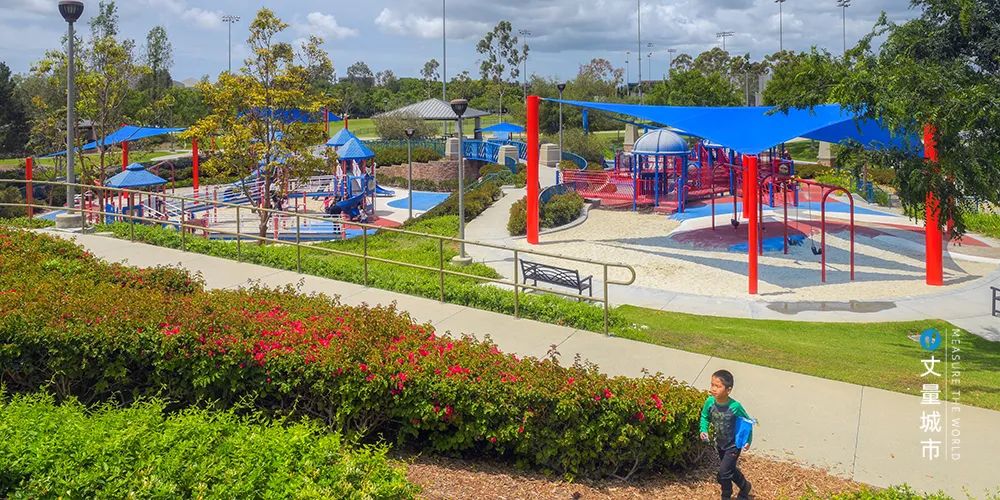 有著面積雖小,但能夠為居民提供近在咫尺的基本娛樂設施的鄰里公園,數量超過40個;擁有22個位于社區中心的多功能社區公園;以及具備4個特殊服務功能的公共站點,例如可以觀賞爾灣全景的塞普爾韋達遠景公園、專門為寵物設計的中央犬吠公園等。