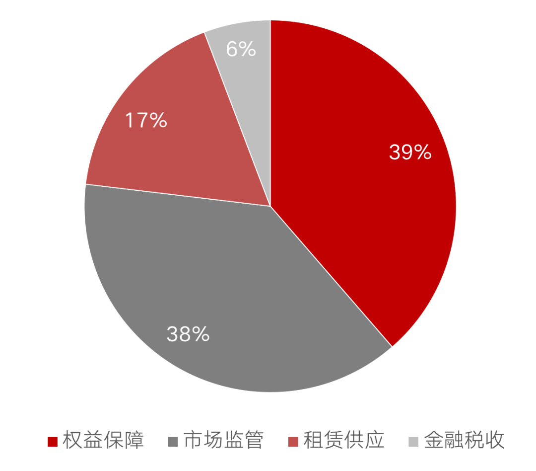 2020年1月至2021年第一季度,我國(guó)46城累計(jì)出臺(tái)租賃相關(guān)政策277條,其中權(quán)益保障類占比最高,占比39%。