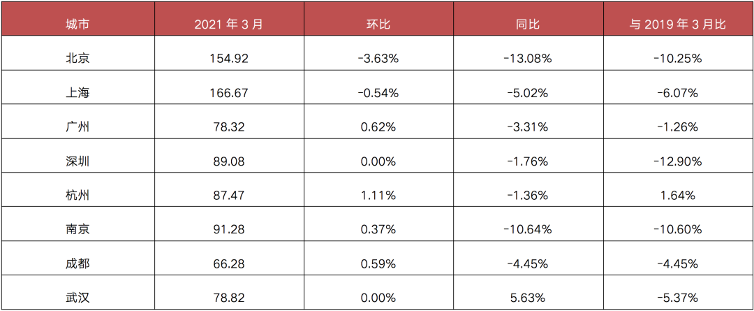 表:2021年3月核心八城
