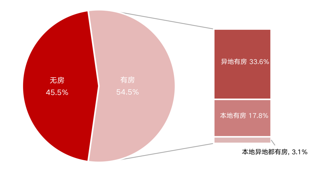八城調(diào)研數(shù)據(jù)顯示,有房租房人群占本地租房客群的54.5%,較無(wú)房租房客群占比更大。其中,多為異地有房,占比達(dá)33.6%,而本地有房客群占比也達(dá)17.8%,可見(jiàn),有房仍租房是市場(chǎng)的常態(tài),并非有房人群就不存在租房需求。