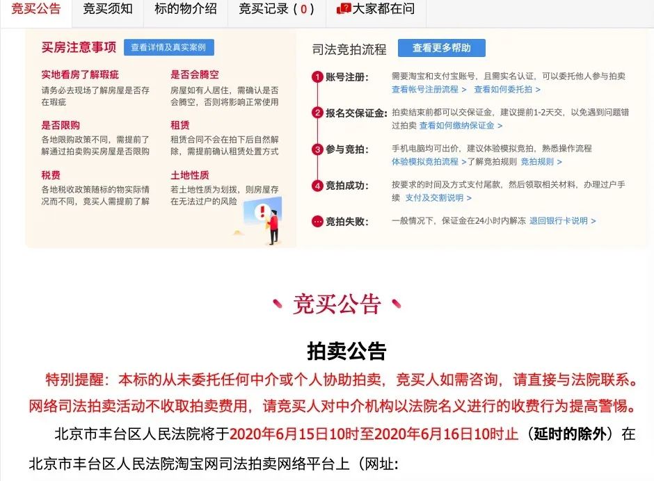 競買公告:這里主要介紹注意法院是否會(huì)負(fù)責(zé)騰空、有無租賃、土地性質(zhì)的問題;還有競拍流程可以參與“模擬競拍”來先嘗試;