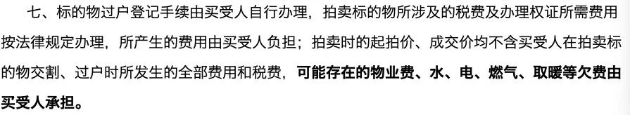 欠費(fèi)情況:水電物業(yè)欠費(fèi)情況,到物業(yè)去核實(shí),競買公告一般說的是全部由買受人承擔(dān);