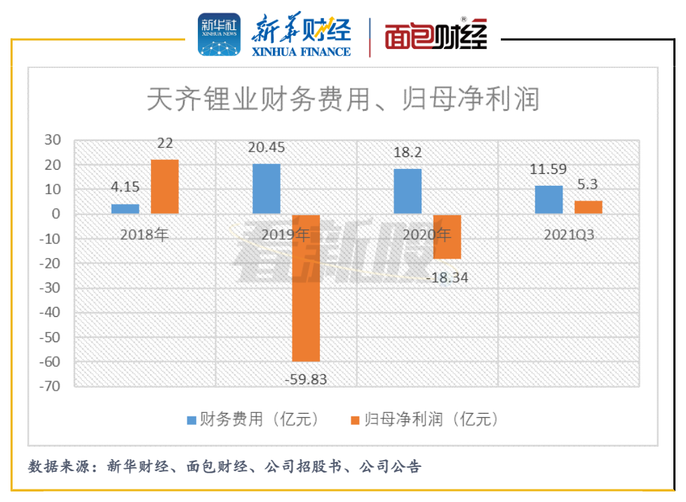 研究發現,2018年及之前的巨額海外并購給天齊鋰業造成了較為嚴重的財務壓力,也曾多次遭交易所問詢。同時,2010年至2021年9月底,十多年間,天齊鋰業累計歸母凈利潤為虧損約10億元。
