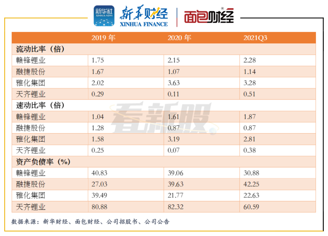2019年至2021年前三季度,天齊鋰業資產負債率及流動比率等償債能力指標均弱于可比上市公司。