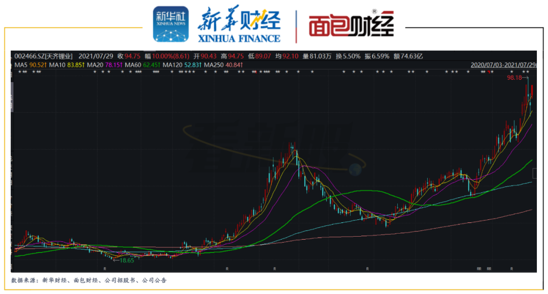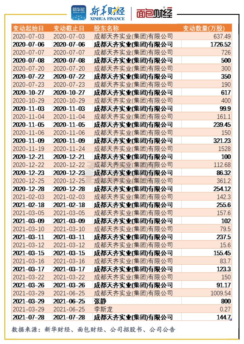數據顯示,2020年7月至12月,天齊集團通過集合競價和大宗交易,合計減持約8861萬股公司股份,合計減持金額超16億元;2021年1月,天齊集團及其一致行動人張靜、李斯龍發布減持計劃,至當年7月29日減持計劃實施完成,上述三位股東合計減持約3548萬股公司股份,合計套現超18億元。