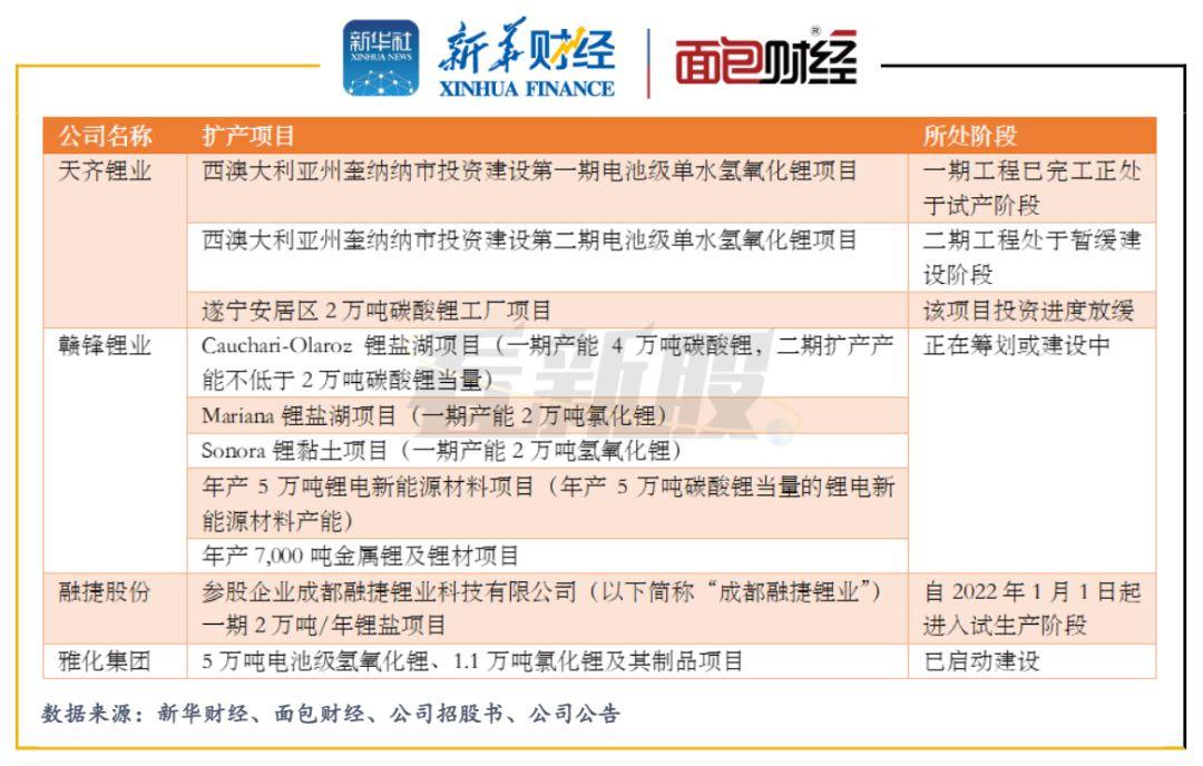 圖11:部分鋰業公司的擴產項目
