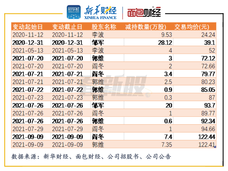 2020年至2021年9月,除天齊鋰業控股股東及其一致行動人外,李波、鄒軍等多名公司股東也多次減持公司股份。期間,公司高管合計減持約90萬股公司股份,合計套現超6000萬元。
