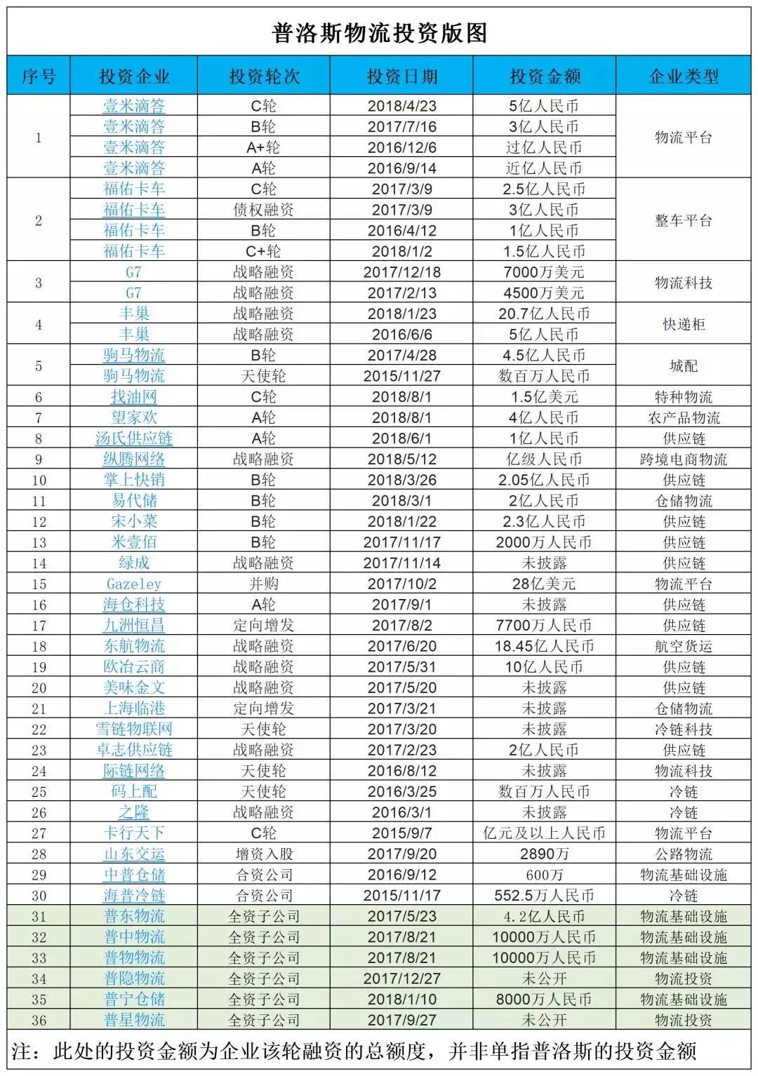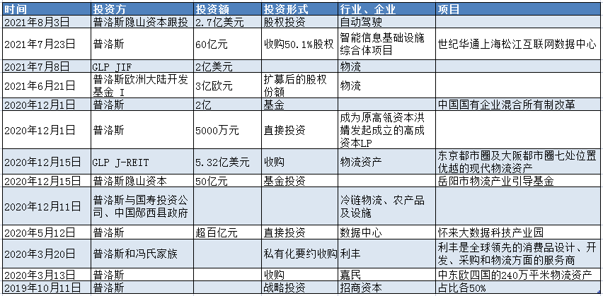 普洛斯近兩年投資事件不完全統計