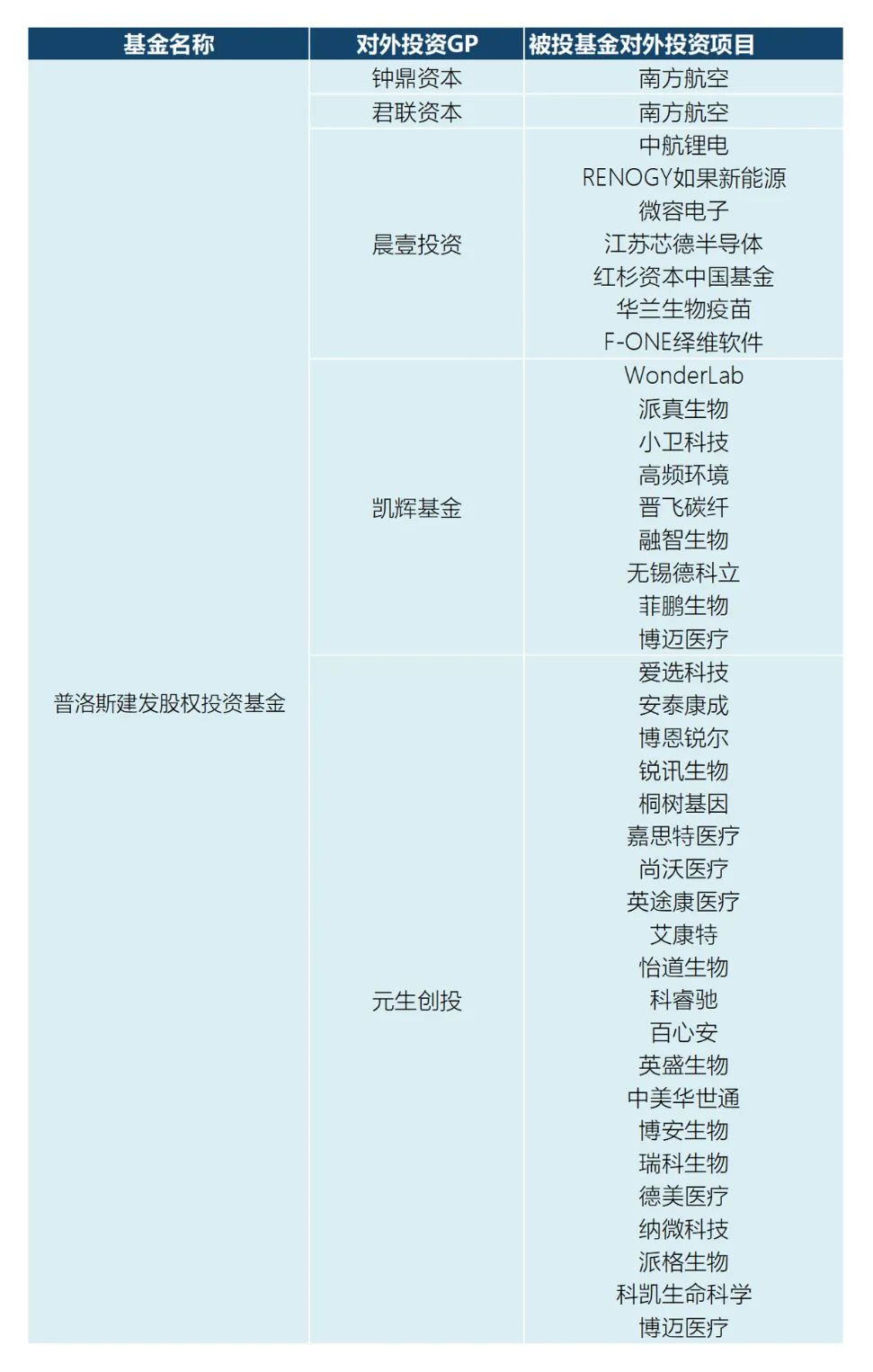 普洛斯建發股權投資基金投資統計