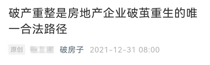 2021年的最后一天,筆者多位朋友轉(zhuǎn)載了《破產(chǎn)重整是房地產(chǎn)企業(yè)破繭重生的唯一合法路徑》。筆者認(rèn)為這種說法有點絕對了,但是破產(chǎn)重整絕對是一個盤活困境項目比較好的方式,破產(chǎn)重整為投資人、債權(quán)人、債務(wù)人和股東提供了一個平和對話的機制,利益得以平衡,再加上破產(chǎn)制度本身具有的保護機制,有利于困境項目的盤活。