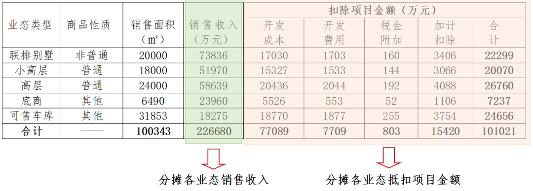 銷售收入的分?jǐn)偡绞酵ǔ](méi)有什么歧義,按照各業(yè)態(tài)銷售實(shí)際發(fā)生為準(zhǔn)即可,但需注意的是如果涉及回遷住房,需考慮回遷物業(yè)視同銷售收入。