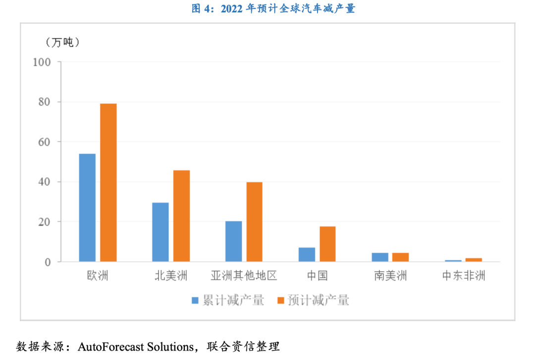 俄羅斯和烏克蘭是全球重要的有色金屬以及稀有氣體的出口國,俄烏沖突導致相關產品價格上漲,并傳導至鋰電池、芯片等多個中游產業(yè)供應短缺,進而加劇下游汽車產業(yè)的產能受限問題