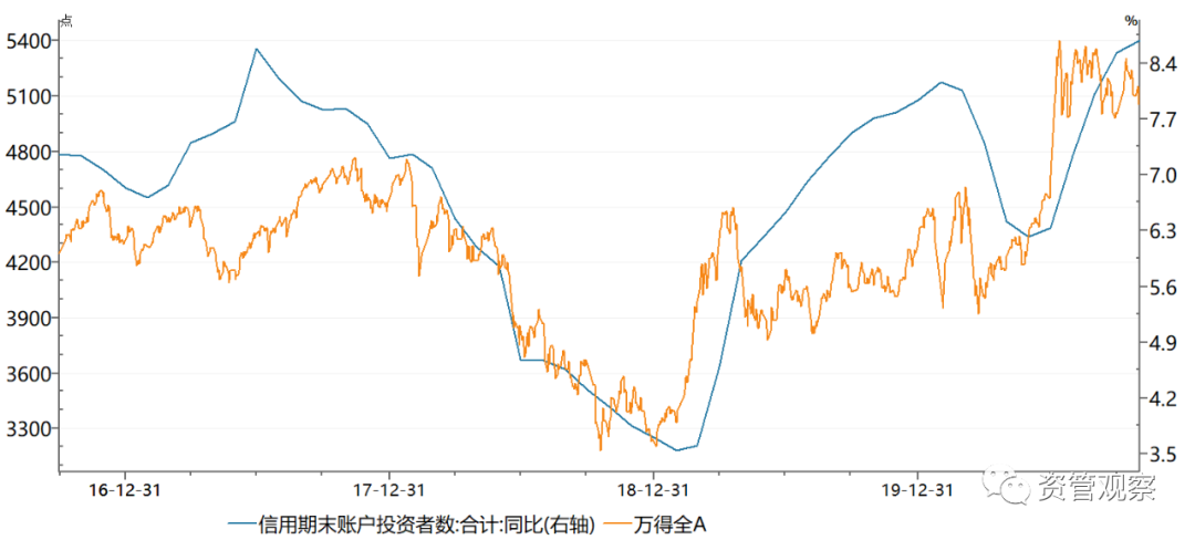 從投資者情緒看,一方面,投資者進場熱情仍較高,6月份以來存續投資者賬戶數量增速持續加快,10月末已超過8%,從歷史經驗看投資者賬戶數量走勢與萬得全A指數走勢具有較強的相關性。從公募基金倉位情況看,公募基金股票持倉相對較高位于80%以上,體現了對于后市走勢的樂觀態勢。不過,行業持倉差異較大,這與行業估值的差異相一致,未來可能面臨調倉的投資變化。