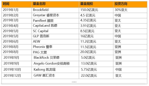 據高和資本數據顯示,2019年各大外資投資亞太地區較大規?;穑?020年仍保持在100億美元以上。2021年是外資基金2019年大規模募資的最后投資期限,預計年底將有大規模資產購買熱潮。