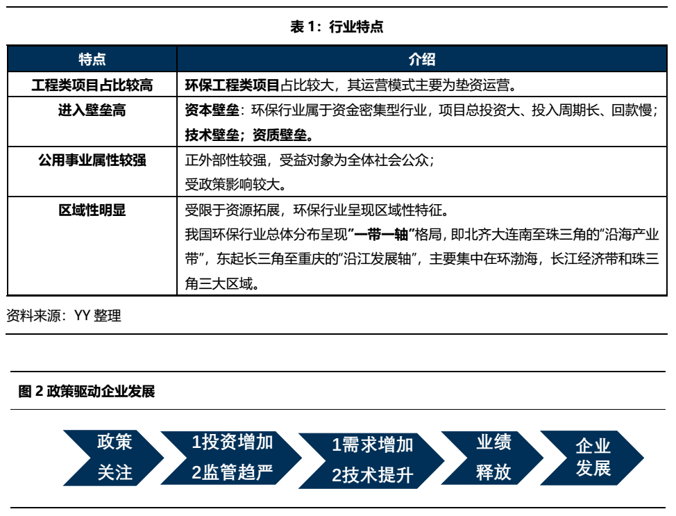 環保行業工程類項目占比較高、進入壁壘較高、公共事業屬性較強、區域性比較明顯。