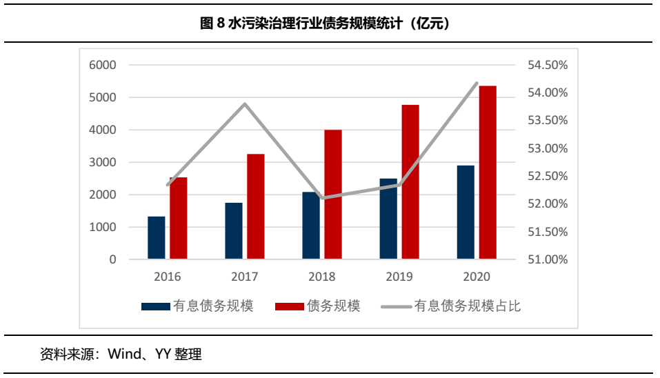 從個體角度而言,由于水污染治理行業項目的回款周期較長,投資額較大,個體進入存在一定的資本、技術、以及資質壁壘,也導致民企普遍存在融資困難。政策、現金流和運行模式成為市場關注的重點。近幾年政策持續利好,國資大量涌入、PPP等模式的流行,融資困難問題得到緩解,但重資產模式也加大水污染行業的債務壓力以及現金流危機。