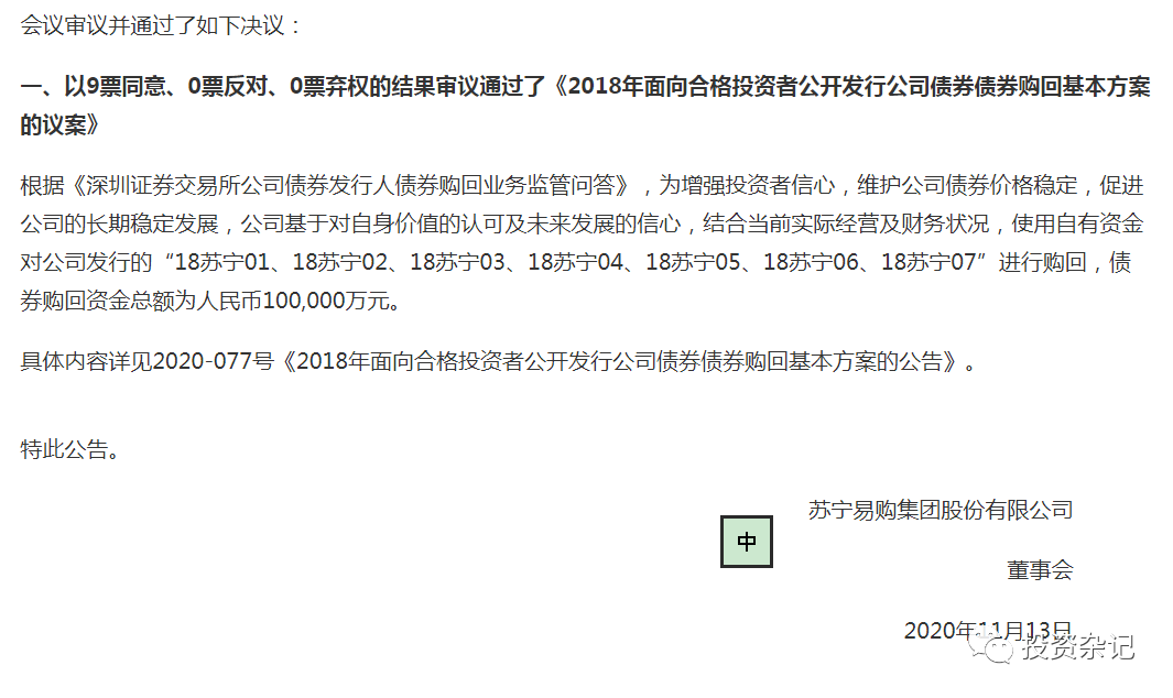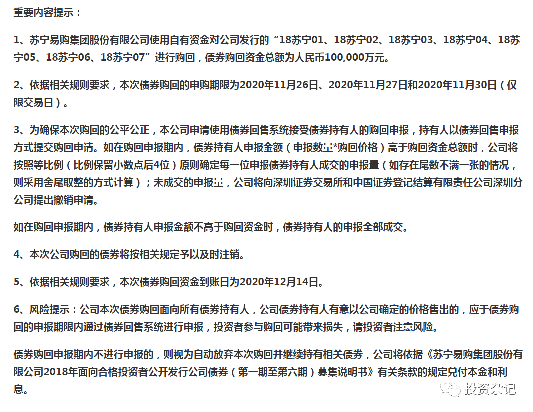 這雙十一剛過,打折賣東西的電商蘇寧發了公告,要回購自己存量“被打折”的債券。