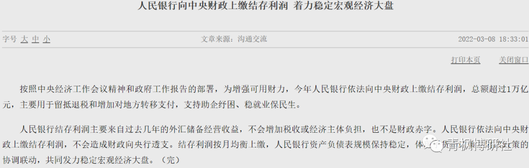 2022年3月8日,針對央行向中央財政上繳結存利潤超1萬億元這一事件,央行和財政部積極進行回應,并引發熱議。本文嘗試對該主題進行討論分析,