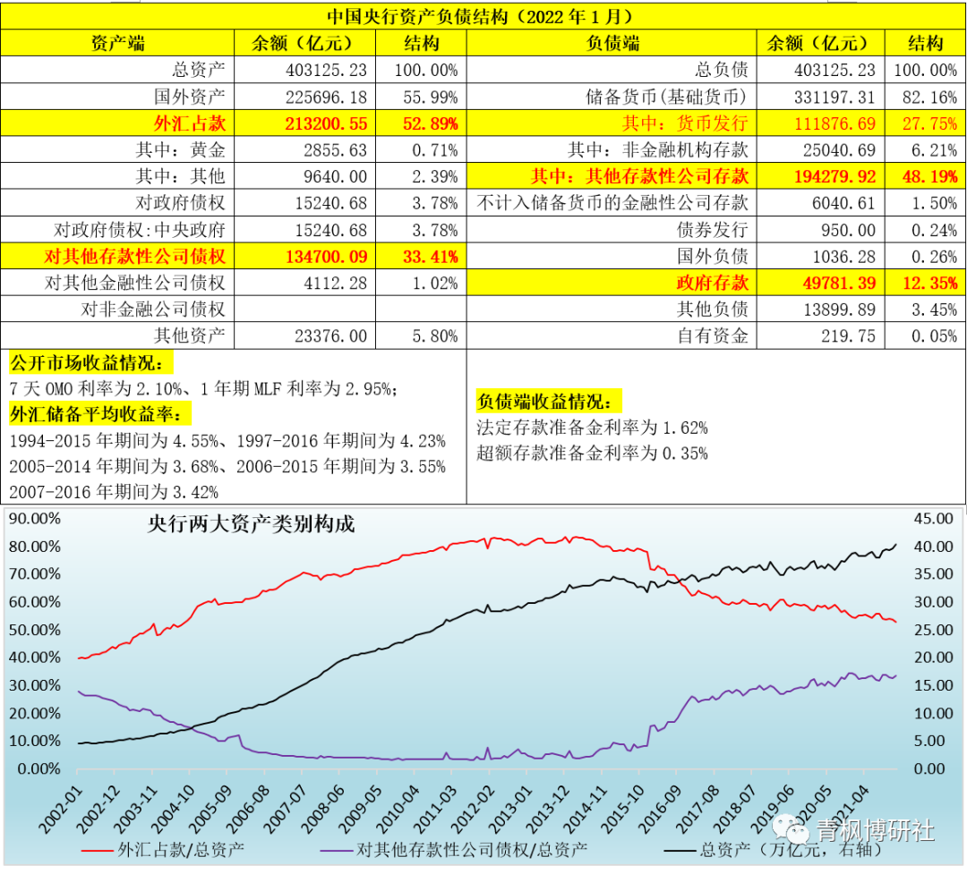 通常情況下,央行對外支付的利息率比較低,平均應在1.60%左右(法定和超額存款準備金利率分別為1.62%和0.35%),而資產端的收益率通常在3%以上。如7天OMO利率為2.10%、1年期MLF利率為2.95%,外匯儲備的平均收益率在3.50%左右。