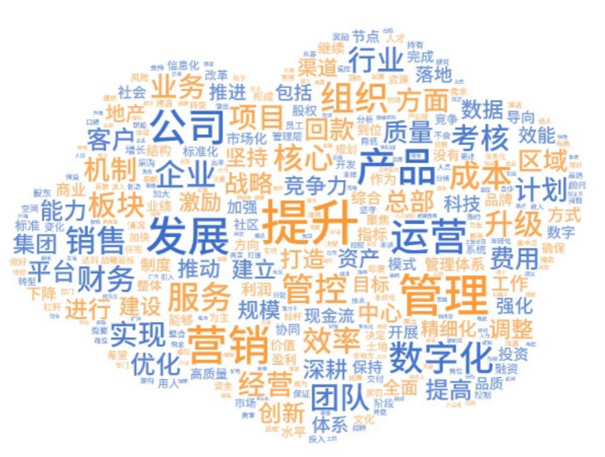 具體舉措中,提及頻次最高的幾個關鍵詞為產品、營銷、運營和數字化。由此可見,這四個方面是正是房企當前調整、優(yōu)化、變革的主要切入點。”