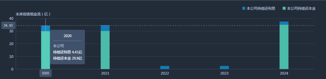 目前,共有流通中人民幣債券6筆,當(dāng)前存續(xù)94.90億元,今年待付本金利息36.73億元。