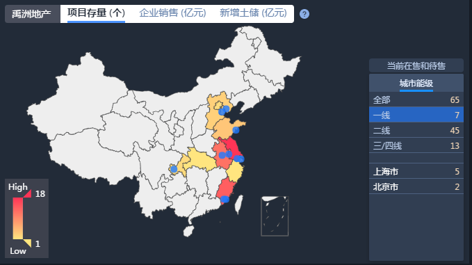禹洲在全國共有65個(gè)項(xiàng)目,項(xiàng)目著重分布在二線城市。