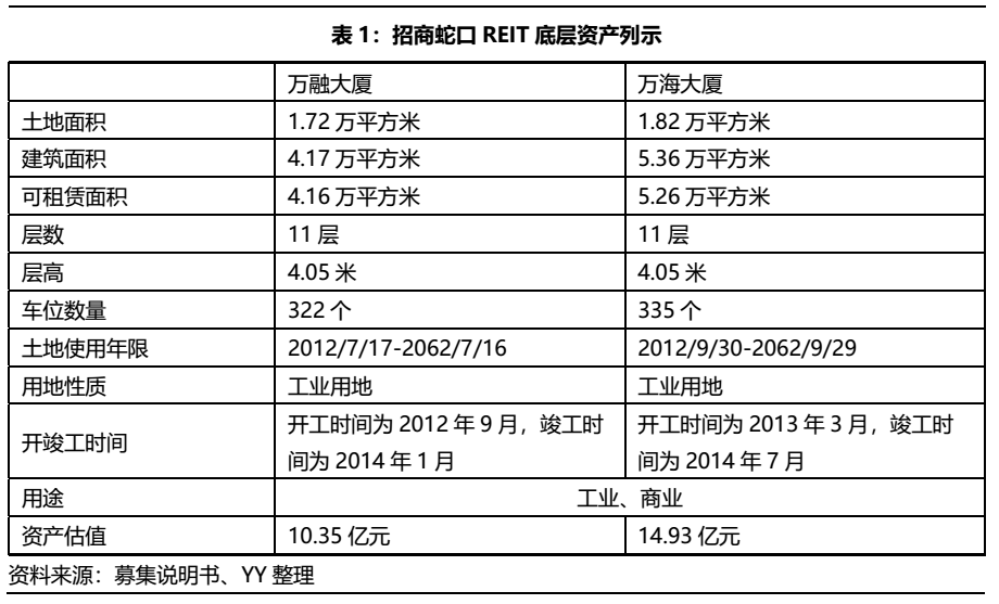 萬融大廈、萬海大廈均為工業用地,于2014年竣工,使用年限至2062年。可租賃面積分別為4.16萬平方米及5.26萬平方米,資產估值分別為10.35億元、14.93億元(依舊采用收益法對資產組估值)。其實兩棟大樓本質就是寫字樓,但因為工業用地的屬性,就可以披著產業園的外衣,裝進公募REITs的底層資產中。