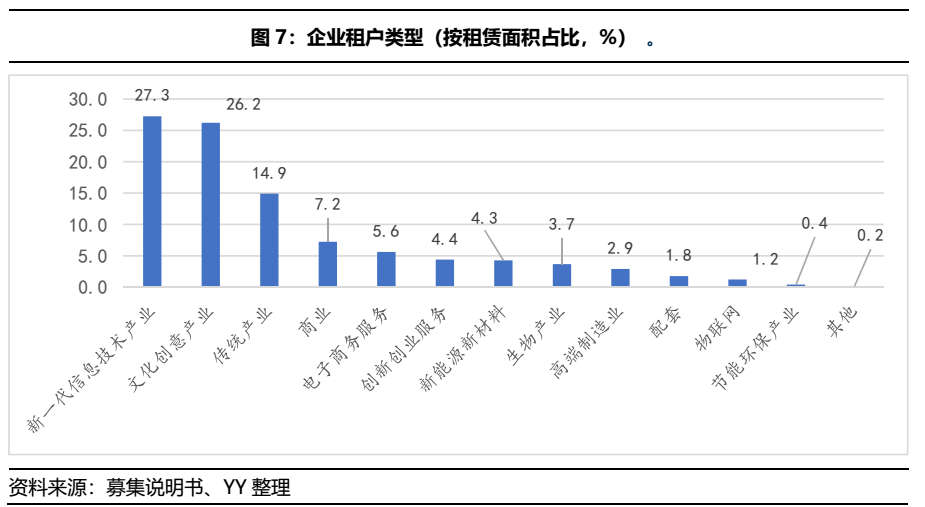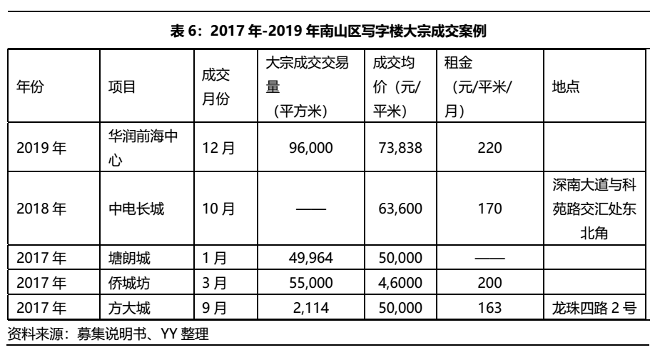對比蛇口產園周圍的租賃競品:以距離蛇口網谷近800米的海翔廣場(開發商為世紀海翔),是于 2015年竣工的甲級寫字樓,得房率為70%,租賃面積以400平方米以下小戶型為主,租金為120元/平米/月,層高為3.5米,出租率保持在80%~90%,硬件方面和底層資產的兩座大廈差異不大,主要是在入住企業類型方面存在不同,以科技、TMT行業公司為主。