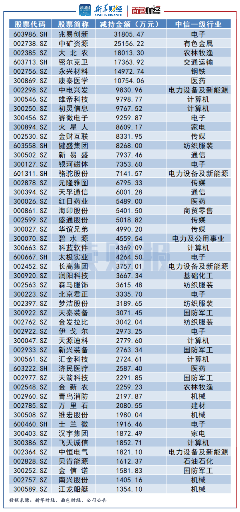 電子行業減持金額居首