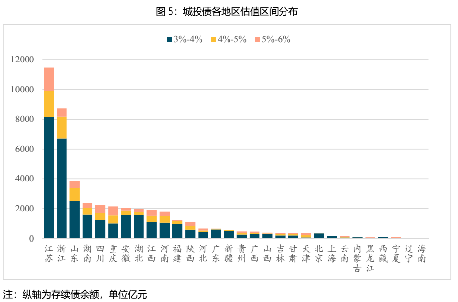 ①江浙兩地多為區縣級平臺(含市級開發區平臺),地市級平臺債券較少(多為估值3%以下債券),省級平臺因收益率基本在3%以下未在圖中;
