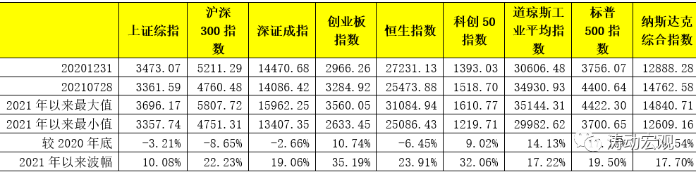 截至2021年7月28日,今年以來,A股市場波動幅度明顯加大,其中上證綜指波動幅度為10.08%、滬深300指數波動幅度為22.23%、深證成指波動幅度為19.06%、創(chuàng)業(yè)板指數和科創(chuàng)50指數波動幅度分別高達35.19%和32.06%。