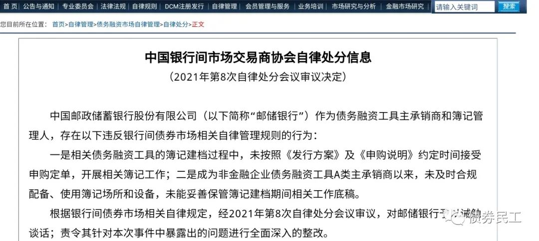 1、交易商協(xié)會對郵儲銀行進行自律處分的原因是相關(guān)債務(wù)融資工具未按照約定時間接受申購定單、未及時合規(guī)配備使用簿記場所和設(shè)備等。交易商協(xié)會對郵儲銀行予以誡勉談話、責令全面深入的整改的自律處分。
