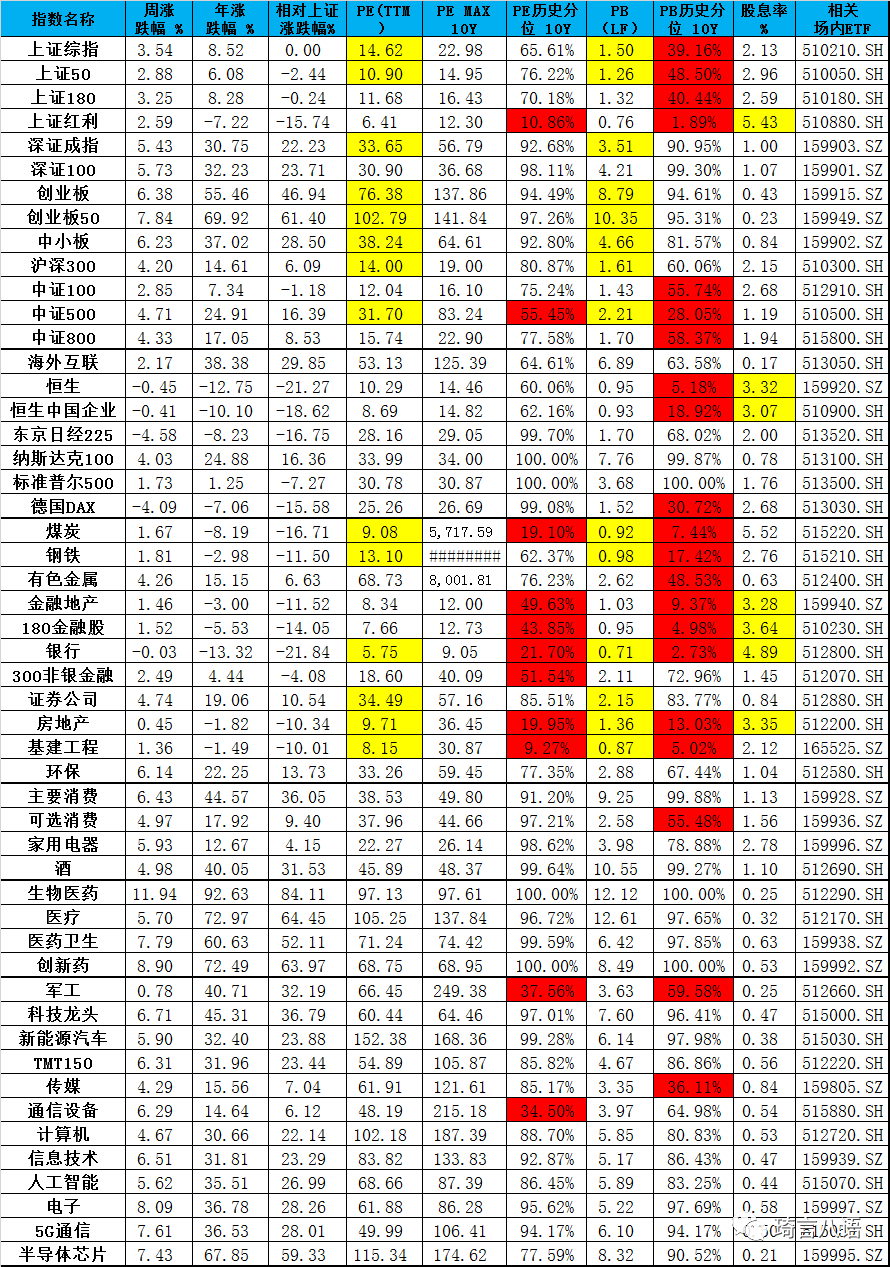 附二:市場(chǎng)重要指數(shù) 漲跌幅、估值、股息率、對(duì)應(yīng)ETF等