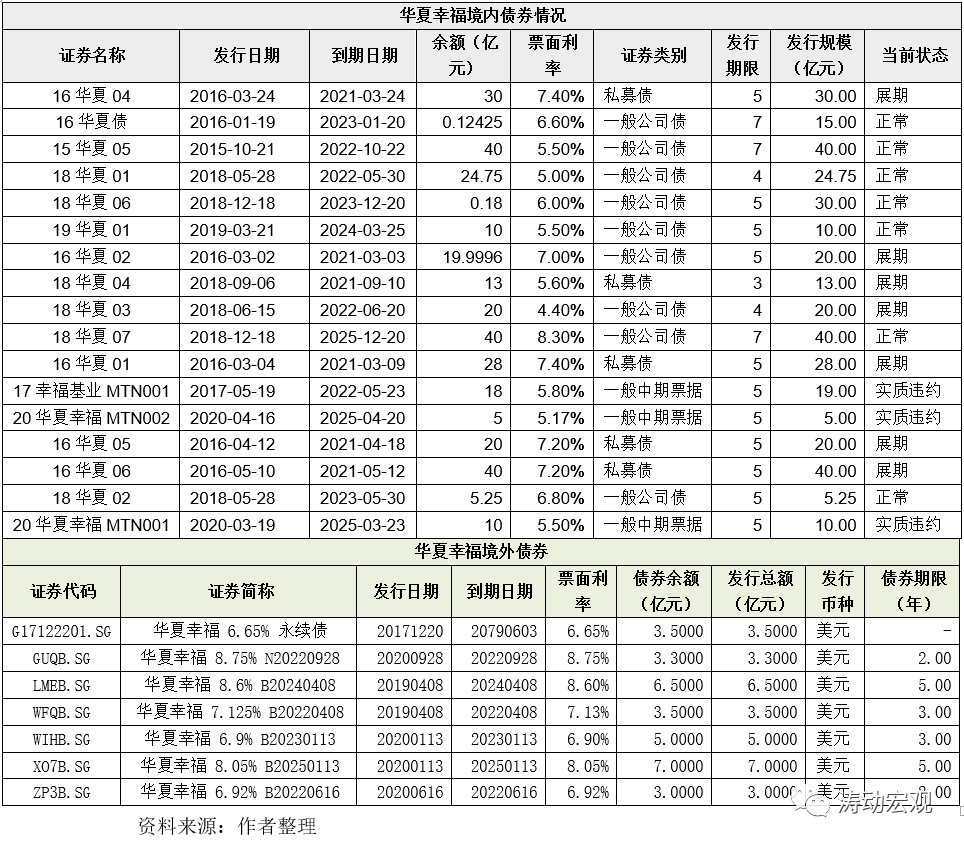 2、華夏幸福目前境外共有7只債券,共計(jì)31.80億美元,平均融資成本為7.57%。其中,有3只美元債券于2022年到期(合計(jì)9.80億美元)。有4只美元債在2020年發(fā)行,主要是因?yàn)槿A夏幸福2020年以來(lái)在境內(nèi)發(fā)債的難度較大。