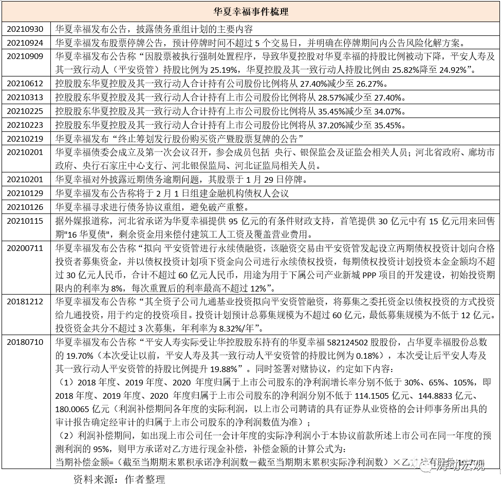 (一)雖然表面上看華夏幸福流動(dòng)性危機(jī)始于2021年1月,但實(shí)際上早在2018年華夏幸福的困局便開(kāi)始出現(xiàn),期間平安人壽及其一致行動(dòng)人的加持一定程度上延緩了華夏幸福危機(jī)的爆發(fā),給華夏幸福帶來(lái)了一些希望。不過(guò)在2020年疫情及限購(gòu)等政策影響下,華夏幸福面臨的困局進(jìn)一步加劇,并爆發(fā)出目前市場(chǎng)所熟知的流動(dòng)性危機(jī)。