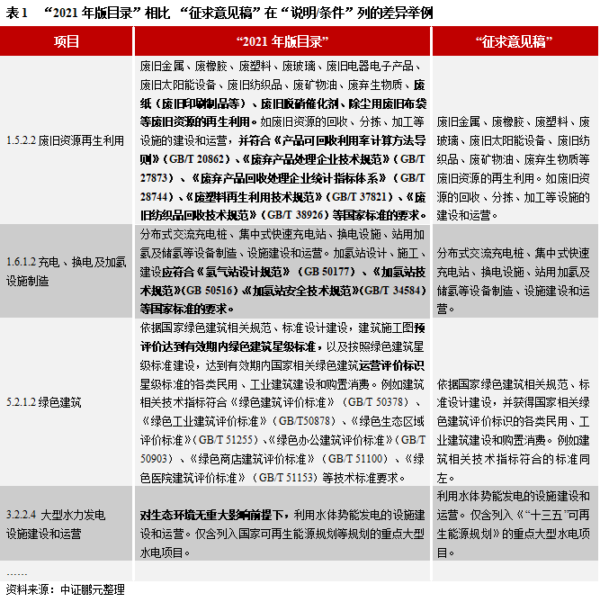 “2021年版目錄”與征求意見稿在一級、二級、三級、四級分類上保持一致,差異體現(xiàn)在項目的“說明/條件”,“2021年版目錄”在部分項目的“說明/條件”列更加具體細化了項目的要求,一方面進一步增加目錄的可操作性,另一方面也提高了部分項目的相關(guān)標準。在具體操作時,一定要仔細閱讀“2021年版目錄” 中各項目“說明/條件”列的相關(guān)要求。