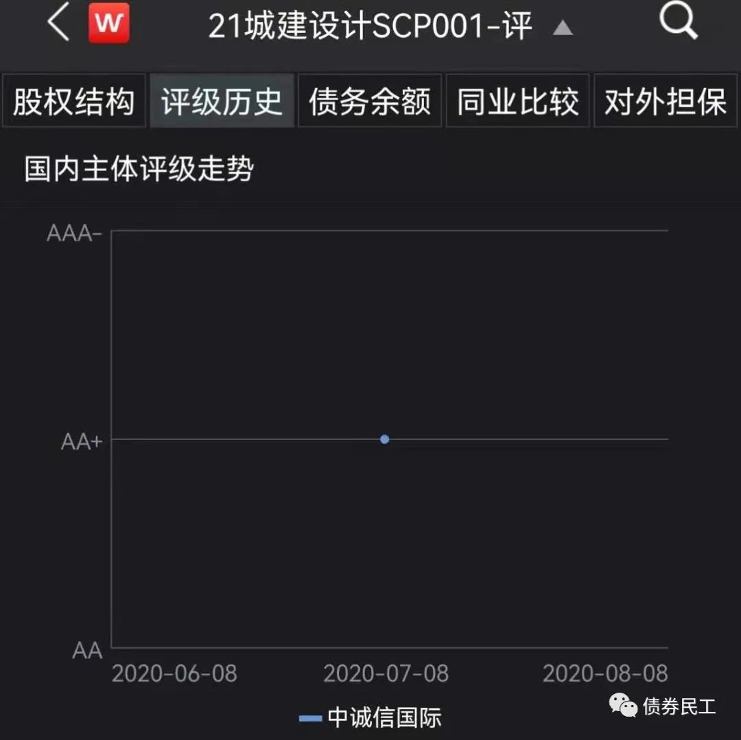 從公開信息查詢來看,城建設計集團在此之前只有中誠信國際一家合作的評級機構,2020年7月8日進行了首次評級,主體評級為AA+,從Wind暫未看到其他評級機構合作信息。