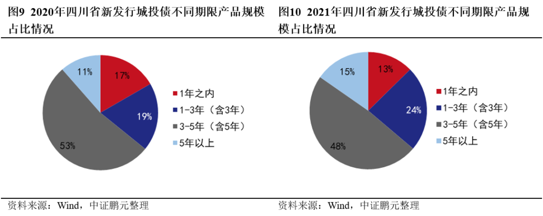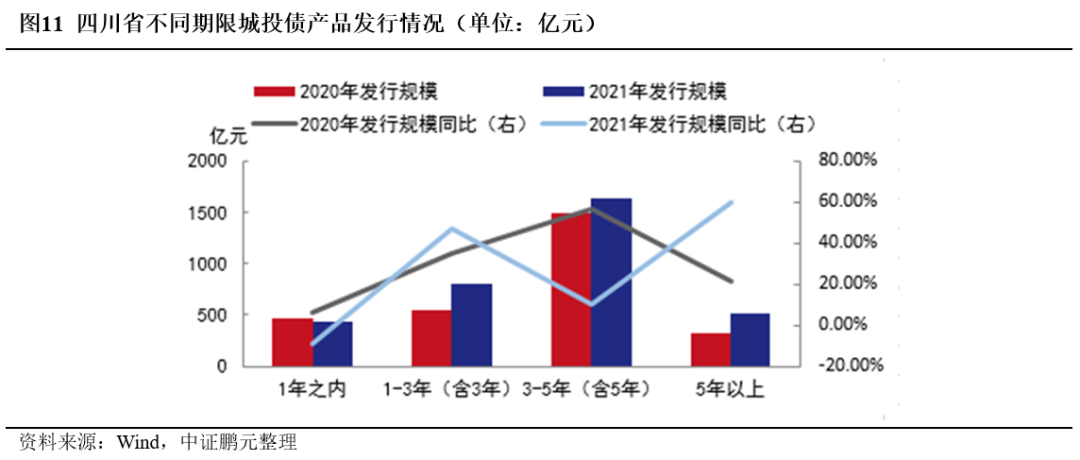 2021年四川省城投債以3-5年(含5年)債券品種為主,該品種增速有所放緩