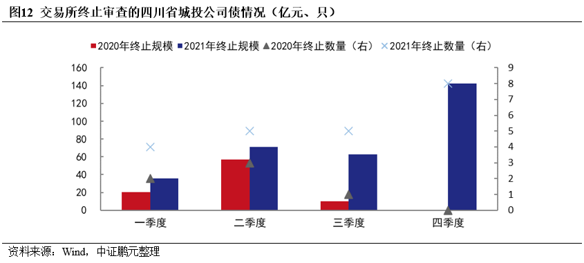 2021年交易所公司債終止項目增長較快,四季度最為明顯,以私募債、成都城投債為主